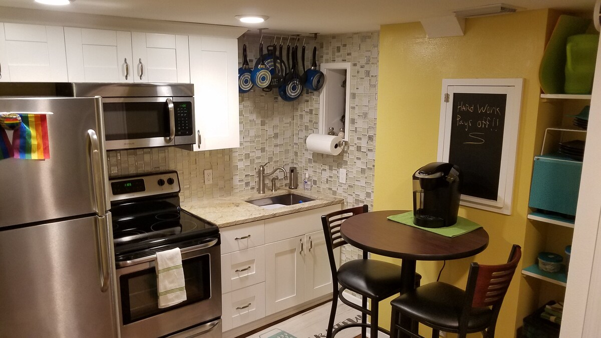 El departamento es una unidad inferior con toques personales. La unidad se encuentra en una ubicación céntrica, pero en un vecindario residencial tranquilo. El dormitorio tiene un techo insonorizado y con persianas opacas para que puedas dormir todo el tiempo que quieras. Perfecto para una pareja para una escapada o un lugar de trabajo remoto. Cocina totalmente equipada y lavandería en la unidad. La unidad tiene Gigabit 🛜 Como el embalaje es una molestia, incluimos la mayoría de los «elementos esenciales». Creemos que hemos pensado en todo. ESTA ES UNA PROPIEDAD PARA NO FUMADORES