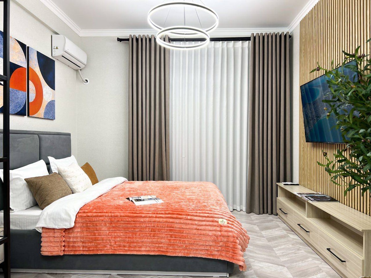 Modernos apartamentos de clase ejecutiva en NRG U-Tower, uno de los complejos más prestigiosos de Tashkent. Interior luminoso con detalles dorados, cama cómoda con ropa de cama de primera calidad, cocina con cafetera, lavavajillas y filtro de agua, Netflix, wifi de 200 Mbps, aire acondicionado. En el balcón hay un acogedor salón con vistas a la ciudad. La casa tiene seguridad 24/7, gimnasio, espacio de coworking, restaurantes y cafeterías cerca. Ideal para viajes de negocios, placer y sesiones de fotos: la comodidad a la que quieres volver.