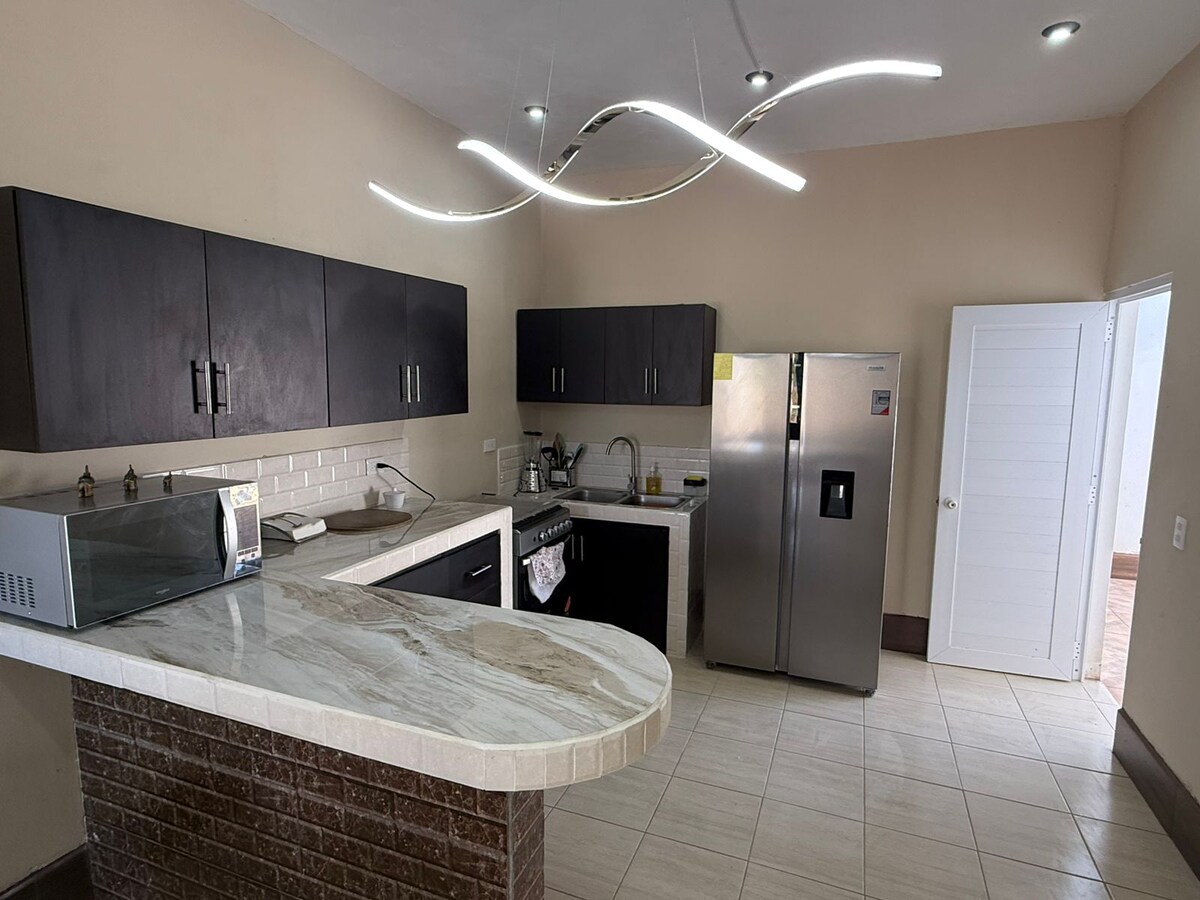 Disfruta y relájate con toda tu familia en nuestro alojamiento más bonito y seguro de la ciudad, donde la tranquilidad se respira, ubicado en el sector más exclusivo y a solo 5 minutos del centro de chiquimula. Parqueo gratis para 2 carros, Contamos con 3 habitaciones, con aire acondicionado las 3 habitaciones y contamos con 2 TV con prime videos, wifi en todas las áreas. Cocina equipada para tus necesidades y suministros básicos para cocinar. Contamos con un patio
