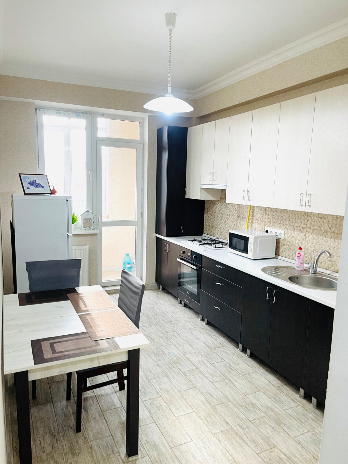 A spacious and very stylish apartment ideal for those who want to enjoy the tranquility of the city far from the noise and bustle, but located at the same time in an area that has everything necessary for a comfortable stay: supermarkets, restaurants, shops, entertainment and others. The apartment is absolutely new, equipped with everything necessary for a comfortable stay. It's design was worked together with a designer, which makes it special and homelike.