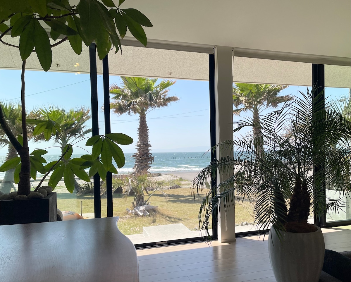 Una villa que se inauguró en 2022. Esta casa frente a la playa fue construida por un famoso estudio de arquitectura con un concepto de "casas cuidadosamente elaboradas". Disfruta de una barbacoa con tu familia rodeada de palmeras en el jardín de césped, observando la puesta de sol sobre la bahía de Ise y el sonido de las olas♪ Ofrecemos una estufa de barbacoa, parrilla, carbón vegetal, pinzas y un quemador para encenderlo, pero por favor trae tu propia comida.