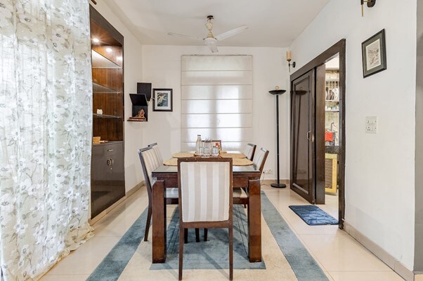 Apartamento de esquina totalmente amueblado, moderno y de 2 camas en una elegante zona sur de Delhi que toca la reserva forestal de Jahanpanah con vistas a una variedad de aves y vida silvestre ocasional. Aunque es tranquilo y privado, está en el centro, a 500 metros del famoso mercado de bloques GK 2 M y del parque CR. La limpieza diaria y la fregona están disponibles junto con un cocinero (por un costo adicional). Es la combinación perfecta de vida moderna, naturaleza y conveniencia.