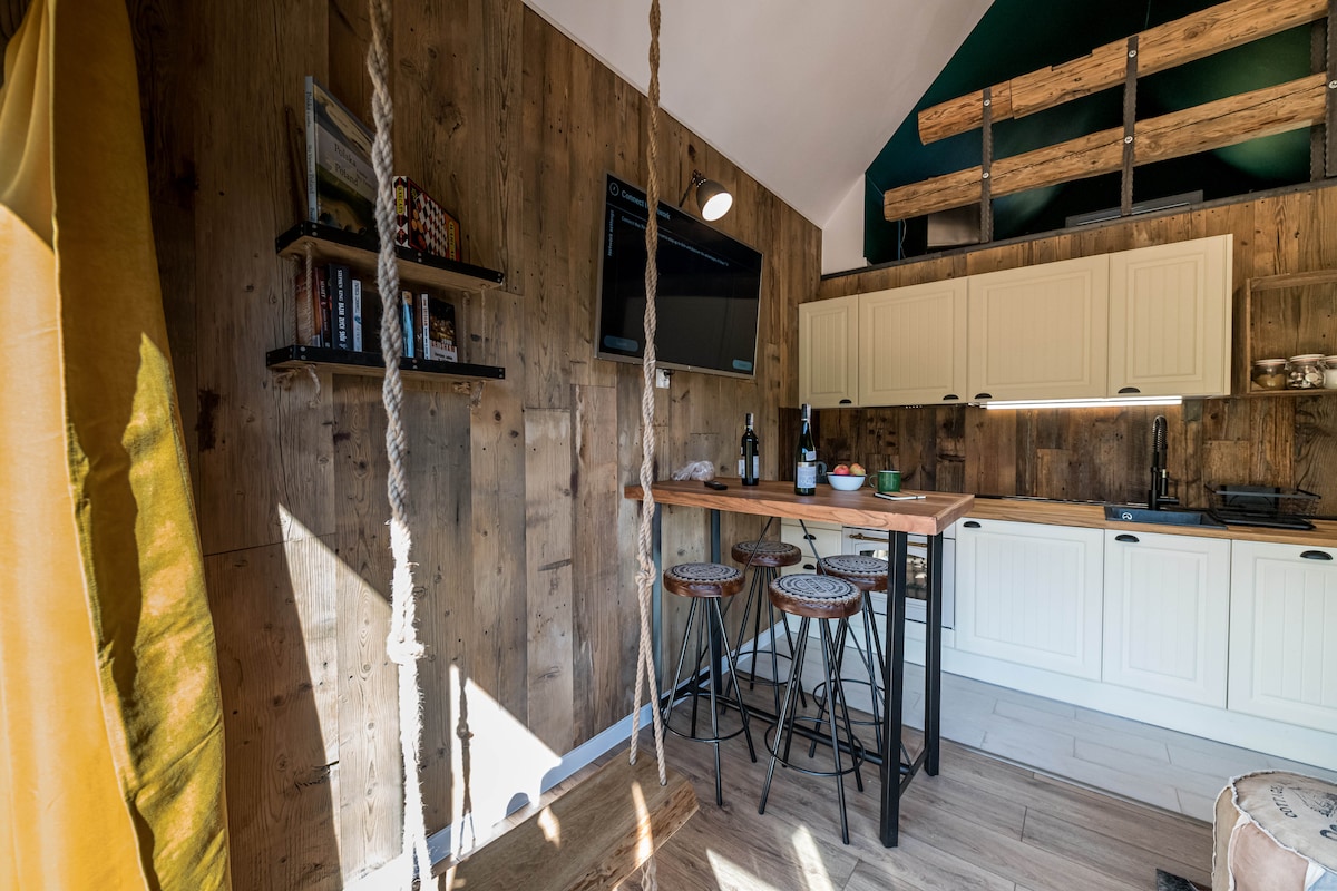 ¡UN LUGAR ÚNICO Y NO TODOS LOS DÍAS! Las casas del árbol son pequeños apartamentos de lujo en Karpacz equipados con el mobiliario necesario para que tus vacaciones en las montañas sean inolvidables y despreocupadas. Para su comodidad, nuestras casas del árbol tienen un baño con una ducha, un lavabo y un aseo. En todas las casas, los pequeños calentadores crean un ambiente acogedor y cálido en los días más fríos de otoño e invierno.