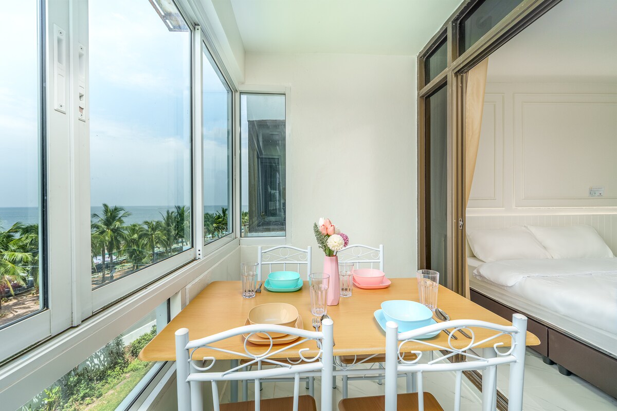 El apartamento privado☆ más exclusivo de Bangsaen. La ☆mejor vista para nadar y hacer ejercicio con vistas al mar en la séptima planta. A ☆solo 3 minutos/200 metros de la playa de Wonnapha. Zona ☆tranquila y fresca, pero cerca de la playa y de pubs, cafeterías y restaurantes. Puedes relajarte y cambiar al modo viaje en 5 minutos a pie. ☆Puedes caminar para comer/7-11/playa/cafetería elegante/restaurante, no necesitas coche. ♡ Elegante habitación estudio cerca de la playa. Preparamos colchones suaves, fragancias, toallas, artículos de aseo y utensilios de cocina.