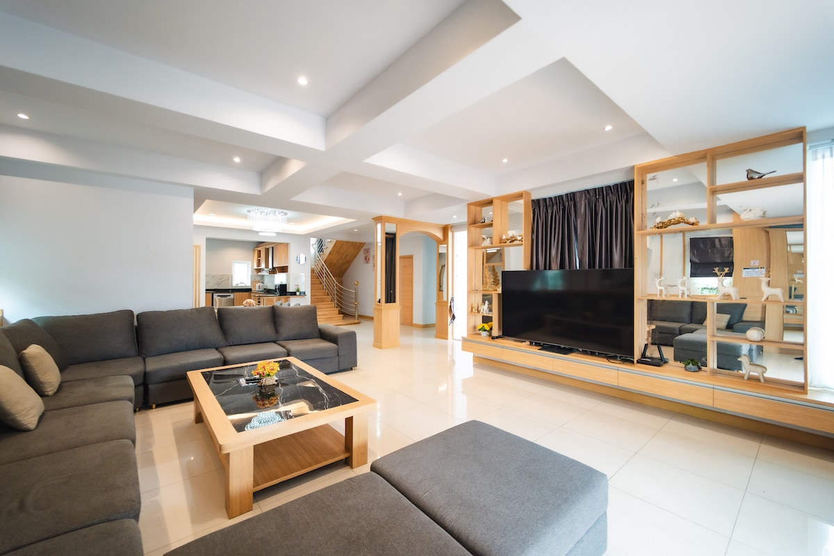 Bienvenido a tu villa privada de lujo con piscina en Pattaya, la escapada perfecta para familias, amigos y grupos que buscan espacio, comodidad y recuerdos inolvidables. Despiértate con el sol junto a tu propia piscina, disfruta de una cena de barbacoa bajo las estrellas o toma un corto viaje a la playa para disfrutar de las vistas del atardecer, todo desde este refugio tropical bellamente diseñado. Ubicado cerca de la calle peatonal y la playa, tiendas, restaurantes y vida nocturna, pero en un barrio tranquilo y pacífico, obtienes lo mejor de ambos mundos.