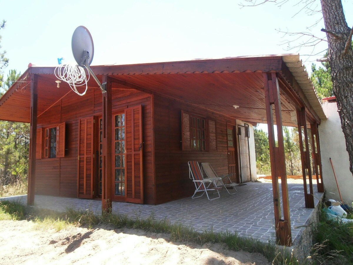Cabaña ubicada a 2 cuadras del mar, en Alborada, Barra Chuy, Brasil, próxima a todos los servicios en zona tranquila rodeada de verde. Cuenta con un dormitorio matrimonial, estar/comedor con dos camas individuales. Al exterior, patio techado equipado para disfrutar tanto durante el día como la noche.