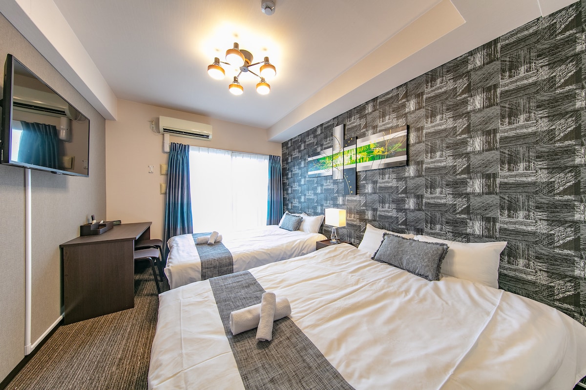 A 6 minutos a pie de la estación de metro de Osaka Shinsaibashi y a 3 minutos de la calle comercial Shinsaibashi Suji, es la mejor ubicación como base para hacer turismo en Osaka. Recién reformado en 2024, este amplio espacio de 46 metros cuadrados está equipado con cuatro camas y puede alojar hasta ocho personas. También cuenta con Wi-Fi de alta velocidad, cocina equipada y muebles de alta calidad. El acceso a lugares de interés turístico, tiendas y restaurantes también es excelente. Disfruta de una cómoda estancia en Osaka.