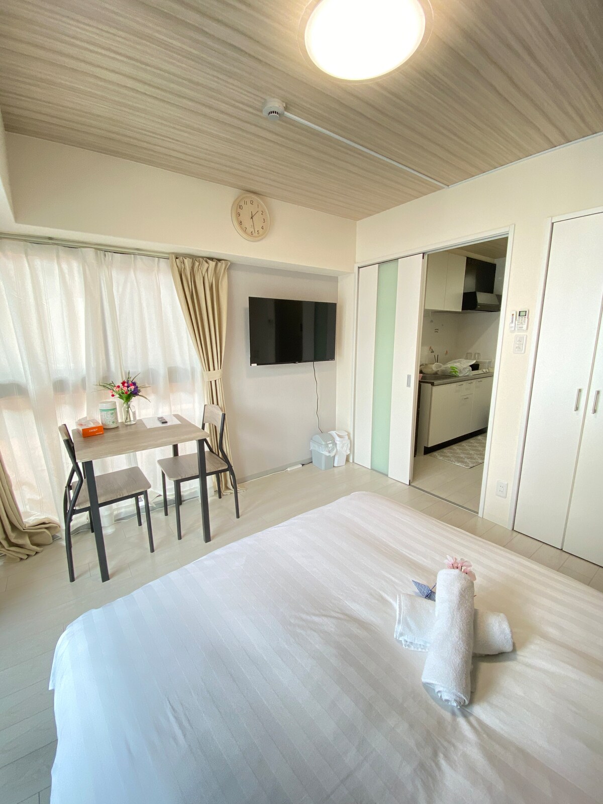 Este departamento de nueva construcción se encuentra justo al lado de la calle comercial Nihonbashi y a 5 minutos a pie de la estación.Hay muchos restaurantes, tiendas y tiendas eléctricas cerca, por lo que es muy conveniente. Está equipado con una sauna privada para ayudarte a descansar de tus viajes. 1. Departamento de nueva construcción, ubicación conveniente 2. Hay WiFi rápido disponible. 3. Habitación espaciosa 4. Un espacio cómodo con cortinas dobles a prueba de llamas que tienen un excelente bloqueo de luz, aislamiento e insonorización. 5. Apoya un sueño cómodo en el colchón de la marca N-sleep 6. Totalmente equipado: cocina, microondas, nevera, lavadora, hervidor de agua, utensilios de cocina. 7. Smart TV de 43pulgadas con streaming para Netflix, YouTube, etc. 8. Sauna privada * Se proporcionan los principales utensilios de cocina, ollas, cuencos y cuchillos, pero por razones de higiene, deberá preparar sus propios condimentos. Disfruta de esta comodidad al máximo con tu familia.