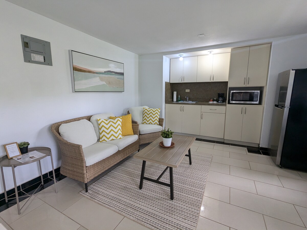 Este espacioso apartamento es la planta baja con jardín de una casa de dos pisos cerca del centro de Ciales, donde hay un Museo del Café, granjas orgánicas, cuevas increíbles y acantilados para escalar, senderismo por picos altos, natación en el río y un rápido trayecto en coche hasta el océano Atlántico. La habitación, muy limpia y espaciosa, está equipada con ventiladores de techo, una ducha climatizada al aire libre y una cocina completa con nevera grande, estufa de gas y horno. Los propietarios viven en el lugar y están disponibles para ayudarte con el registro y toda la planificación de tu viaje.