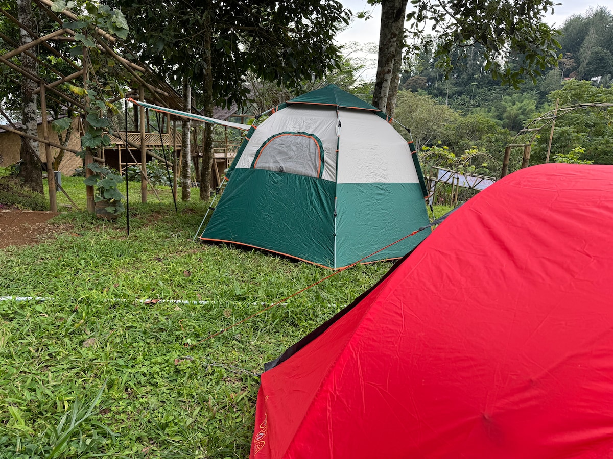 Experience open-air camping in Situgunung for up to 12 guests. We provide 3 fully equipped tents, each with 3 mattresses and 3 blankets/sleeping bags. Ideal for communities, schools, or company outings seeking a cool, peaceful nature escape. Facilities include 4 shared bathrooms, a prayer room, campfire area, and communal kitchen. Located near Curug Sawer and the Suspension Bridge. Perfect for reflection, outdoor fun, or relaxed group gatherings.