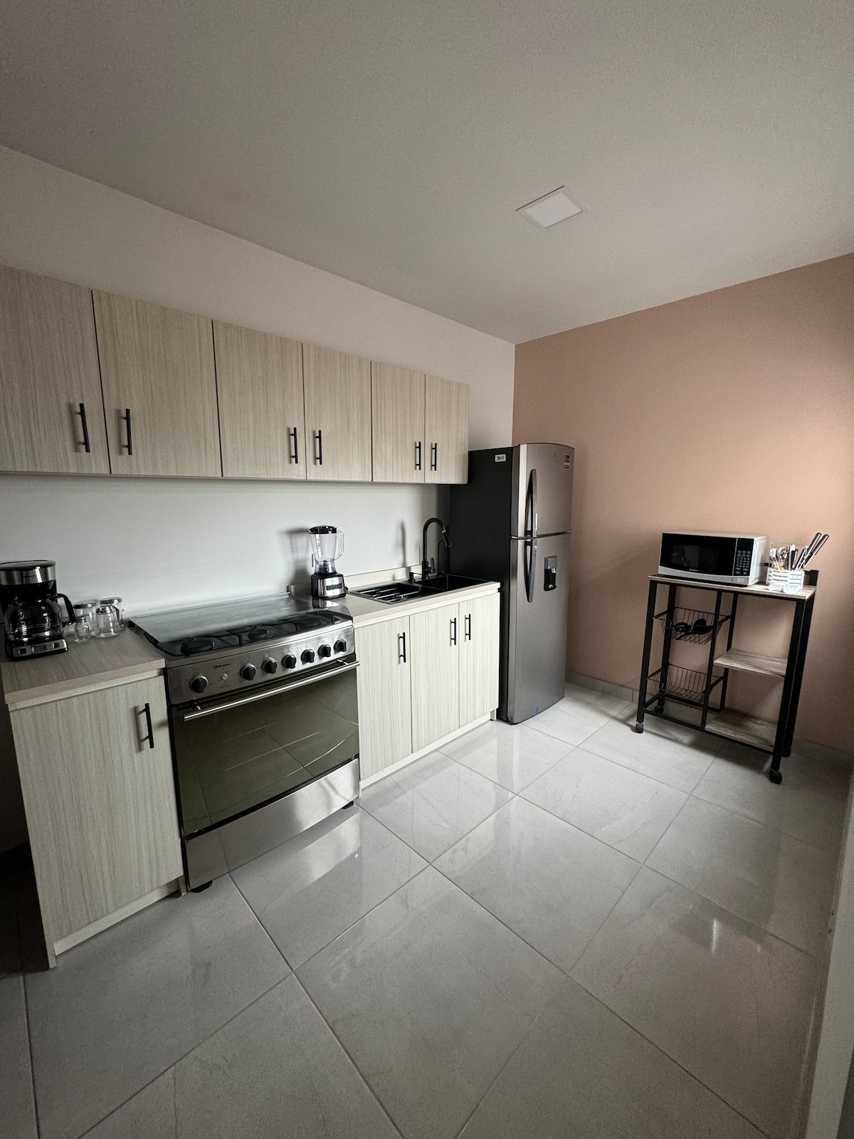Alojamiento ideal para quienes viajan por trabajo o estancias prolongadas, aquí encontrarás una estancia cómoda y funcional. Tendrás un espacio privado, amplio y totalmente equipado donde puedes sentirlo como tu hogar, ademas de cochera techada y portón eléctrico para llegar sin problemas de estacionamiento y sentirte seguro desde el primer día.