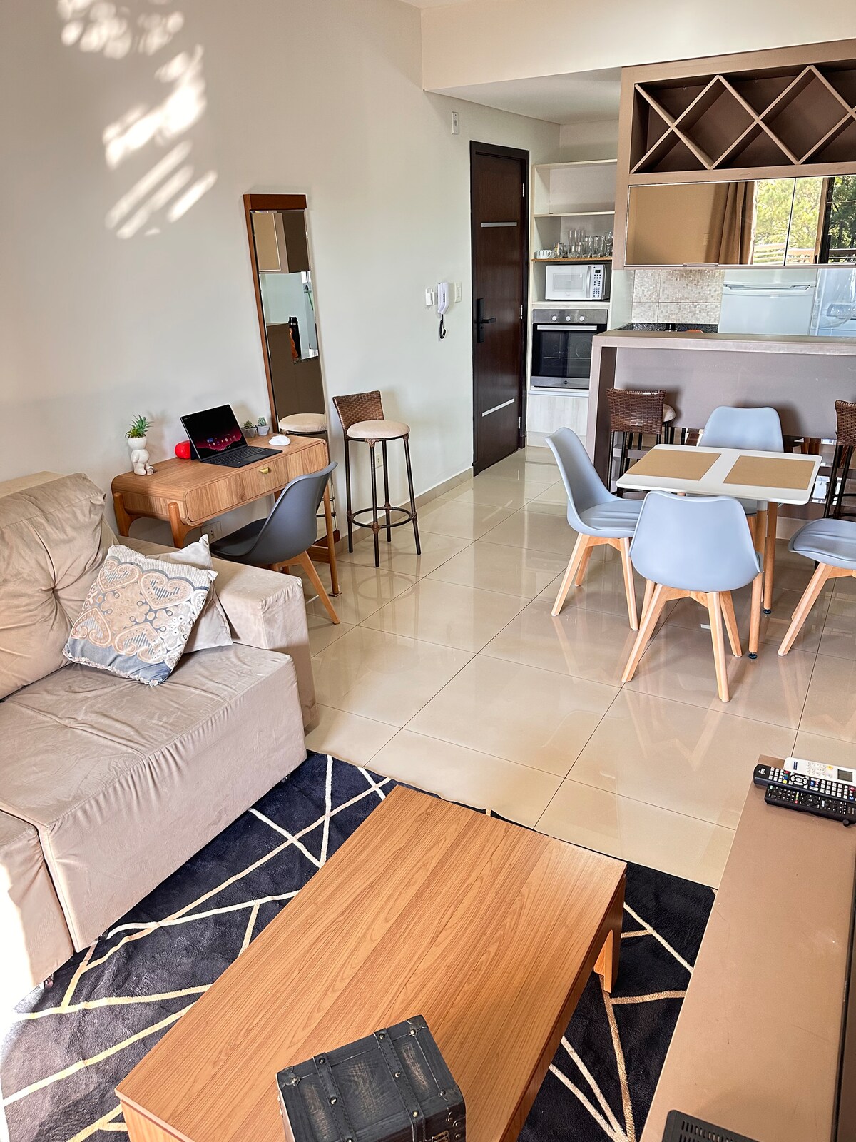Modernos apartamentos de 120 m² para hasta 10 personas, en el centro de Foz de Iguazú. Comodidad, tecnología y recepción 24 horas. Cocina completa, barbacoa privada, aire acondicionado en todos los ambientes y estacionamiento gratuito para 2 vehículos (con reserva). El condominio ofrece ocio completo: piscina, jacuzzi climatizado, sauna, gimnasio, sala infantil, sala de juegos, espacio de coworking, salón de belleza y mercado 24h.
