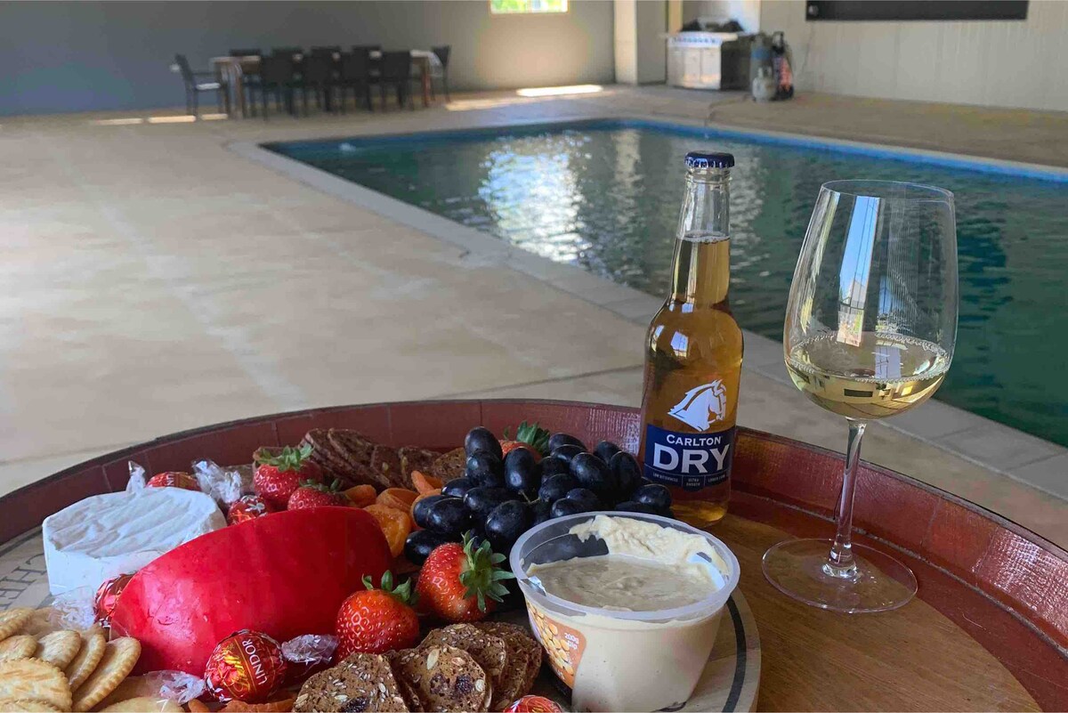 Escape to your own private Clare Valley vineyard, perfect for groups of 4 up to 8. Walk to iconic wineries like Skillogalee and Sevenhill Cellars, then return to relax by the pool, enjoy long lunches and unwind by the firepit or overlooking the vines. Set among gardens and open lawns, the home offers 4 bedrooms, 2 bathrooms, fully equipped kitchen, games room and multiple living areas. Walking/cycling trails begin at the front gate, with the Riesling Trail and hotel close by. Location location.