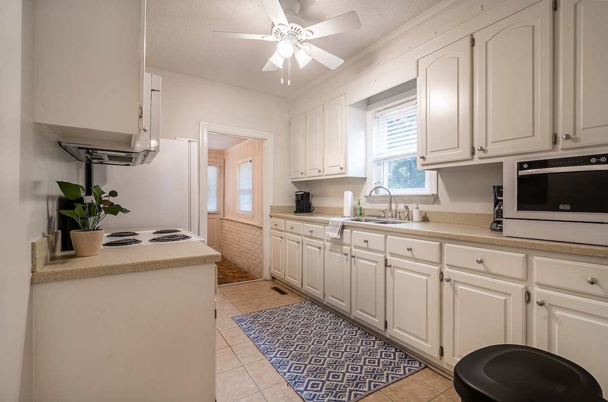 You’ll be close to everything when you stay at this centrally-located bungalow. You’re a 1 minute walk from beautiful Swan Lake Iris Gardens. Drive to downtown Sumter in 4 mins & Shaw AFB in 15 mins. Enjoy the cozy porch or outdoor fire pit with seating & basketball goal. There's a fenced yard for kids/pets. 3 bedrooms/1 bath; extra room with loveseat, TV, games/books/toys. Spacious kitchen & laundry room for your convenience. Enjoy free Wifi & Smart TVs. I am a licensed real estate agent.