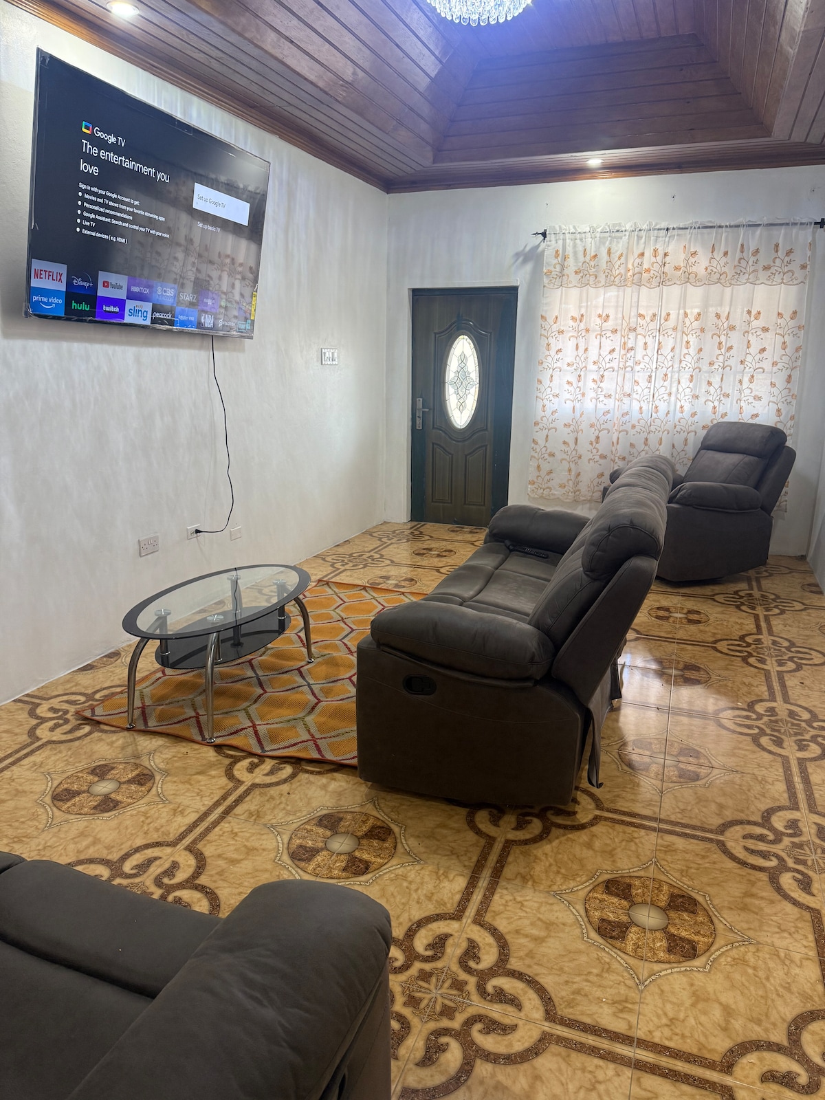 Dúplex en una ubicación tranquila cerca de Glenmuir Rd. Este anuncio es la unidad n.º 2 con más de 40 servicios, que incluyen entrada privada, aire acondicionado, wifi, 3 televisores inteligentes, agua caliente, 2 dormitorios (1 en suite), 2 baños, salón/comedor, cocina equipada, porche delantero y trasero y otros servicios diseñados para tu comodidad. A solo 3 minutos de la autopista 2000, los huéspedes están ubicados en el centro, con acceso a las costas norte, este y oeste, y a pocos minutos de la tienda de comestibles, entretenimiento, centros comerciales y restaurantes de May Pen.