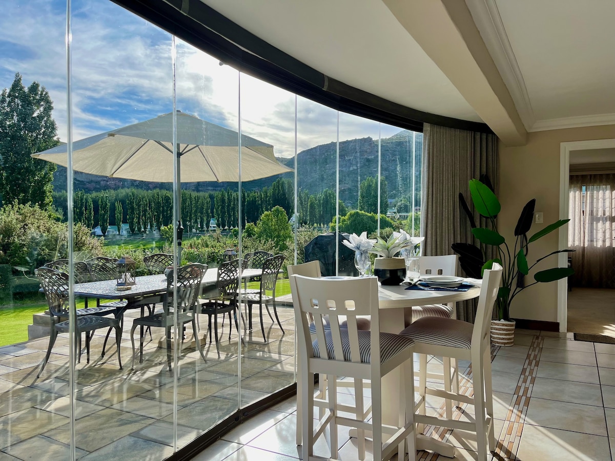 Full of character, cozy and comfortable. Stunning unrestricted 180degree views of the mountains. 3 bedrooms with comfortable beds. Beautiful main bathroom with luxurious tub and double shower plus main en-suite. Kitchen is thoroughly modern and fully equipped. Sparkling jacuzzi. Closed-combustion fireplace for those cold winter evenings and a patio room with indoor braai and exquisite views. Seamless Inverter/Battery backup power. Town Square in easy walking distance.