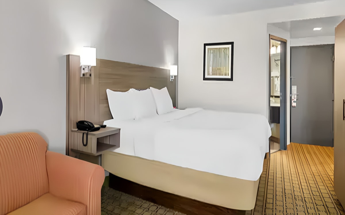 Our modern, efficient rooms offer a cozy king bed, user-friendly TV, desk, air conditioning, and free WiFi—ideal for relaxing or staying productive. Enjoy a continental breakfast before visiting Memorial Stadium or scenic Groce Hill. With free parking, a fitness center, and friendly service, your stay is convenient and stress-free.