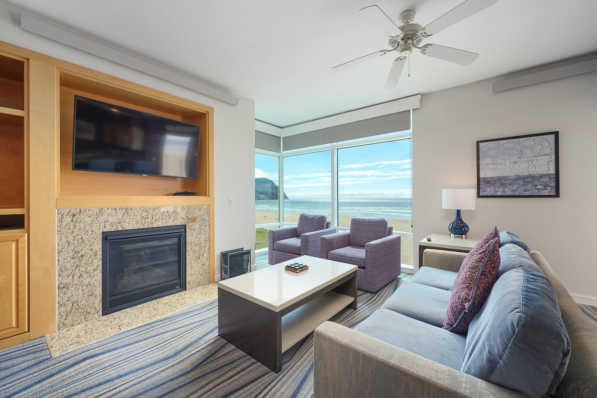 Este hermoso centro vacacional se encuentra en uno de los lugares más impresionantes de la costa de Oregón, al final del histórico sendero Lewis y Clark. Cien metros de playa de arena conducen al agua. Pasea por el famoso Seaside Promenade, contempla la estatua de Lewis y Clark en la conocida vuelta de Seaside o visita el encantador acuario de Seaside, a solo unos metros de su puerta principal.