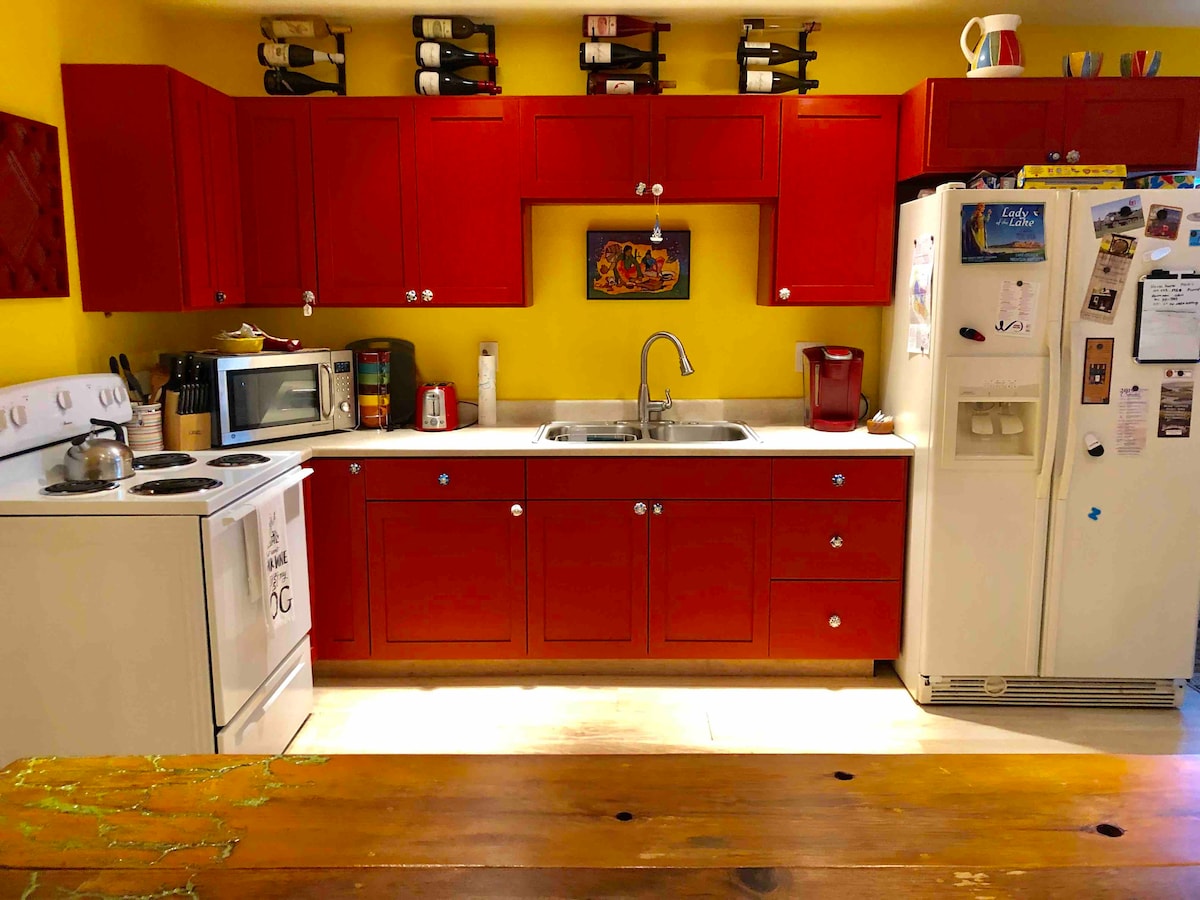 Desconecta de la rutina en Dancing Waters, un alojamiento único y relajante ubicado en Pirate's Cove. Disfruta de las vistas siempre cambiantes con muchas especies de aves en el telón de fondo del monte Konocti. Especial Navidad: Disfruta del acceso al muelle, incluida la meditación bajo la pirámide. Hemos creado este apartamento de 450 pies cuadrados a partir de la casa existente en la que vivimos actualmente. Tiene entrada independiente en la calle con aparcamiento. Cuenta con una cama tamaño king, TV de 50 pulgadas, escritorios, chimenea eléctrica, minicocina/bar.