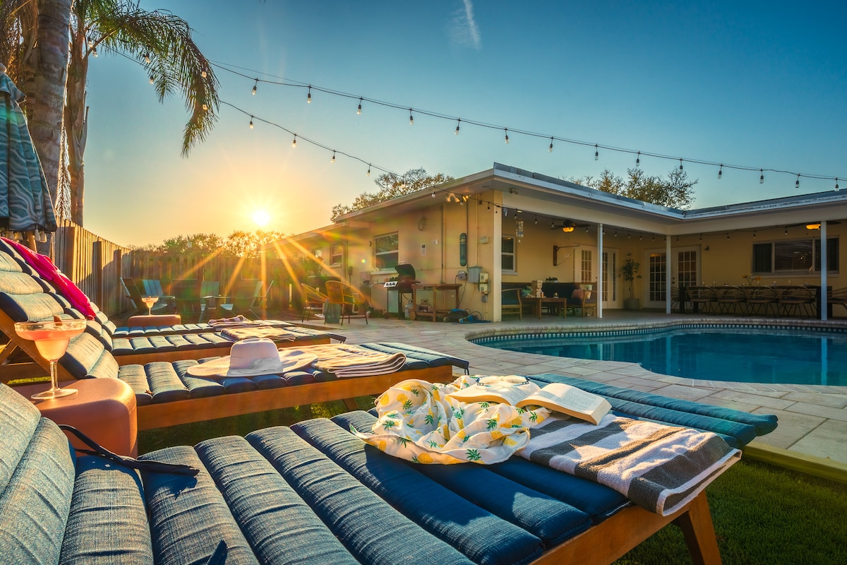 ¡Bienvenido a tu propio paraíso tropical privado en Clearwater, FL! Este alojamiento ha sido magistralmente diseñado y lleno de comodidades para ofrecerte a ti, a tus familiares y amigos, una experiencia de vacaciones en la playa inolvidable. Piscina climatizada, minigolf-pong, chimenea, salas de juegos y mucho más; ¡nunca querrás irte! A 5 minutos del centro de Largo. A 10 min de Clearwater Beach A 15 minutos: Sand Key Park, Ruth Eckerd Hall, Clearwater Int. Aeropuerto a 30 minutos de Tampa. ¡Experimenta Clearwater con nosotros y más información a continuación!
