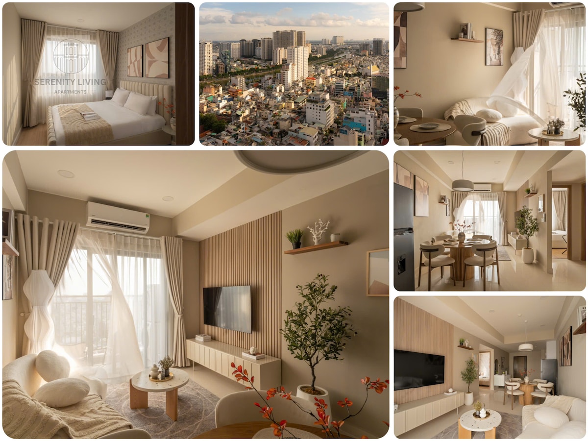 Moderno apartamento de 2 dormitorios con vistas increíbles al río para personas, familias o grupos. A 50 metros, se puede ir andando fácilmente al cine Lotte en TNL Plaza, a Starbucks, al supermercado, etc. Ofrecemos un excelente servicio con todo lo necesario para tu viaje, como: - A 5 minutos de los distritos 1, 2, 3, 5, 7 y 8. - 2 dormitorios con 2 baños. - Cocina totalmente equipada. - 3 aire acondicionados. - Lavadora y nevera, hervidor de agua rápido. - Wifi y TV de pantalla plana TCL de 43 pulgadas. - Champú, toallas, secador de pelo, etc.