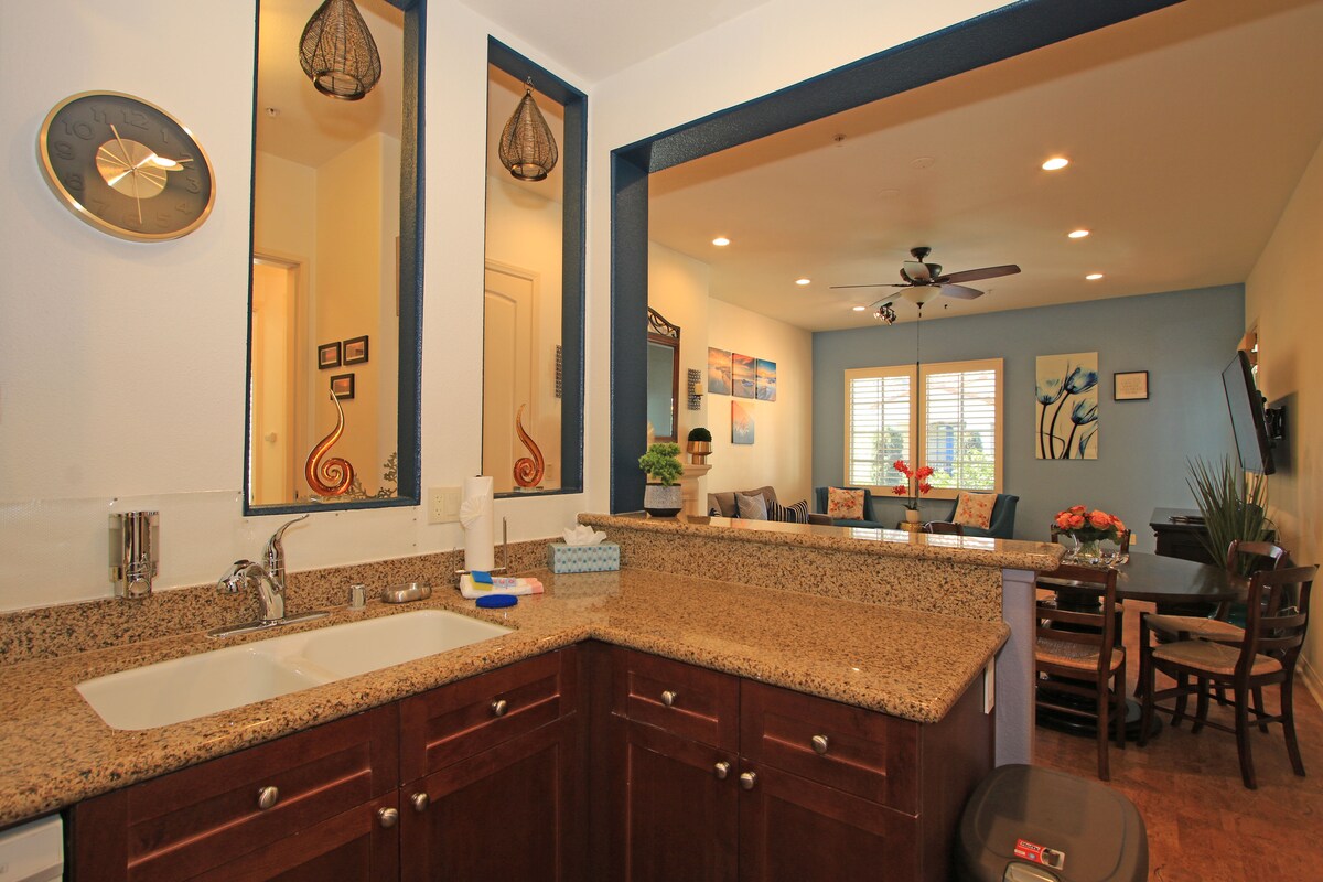 El Legacy Palms es un apartamento de 2 dormitorios y 2 baños recién reformado, espacioso y luminoso con un ambiente moderno del desierto de California. Las puertas francesas se abren a un gran balcón privado con comedor y sala de estar, con vistas a los exuberantes jardines de la villa y a las fuentes de agua. Cuenta con una cocina completa con electrodomésticos nuevos de acero inoxidable, 3 televisores inteligentes, comedor, 2 chimeneas y sofá cama tamaño queen en la sala de estar. Los terrenos de la comunidad cuentan con 12 piscinas climatizadas y spas, gimnasio, hamacas, parrillas y mucho más.