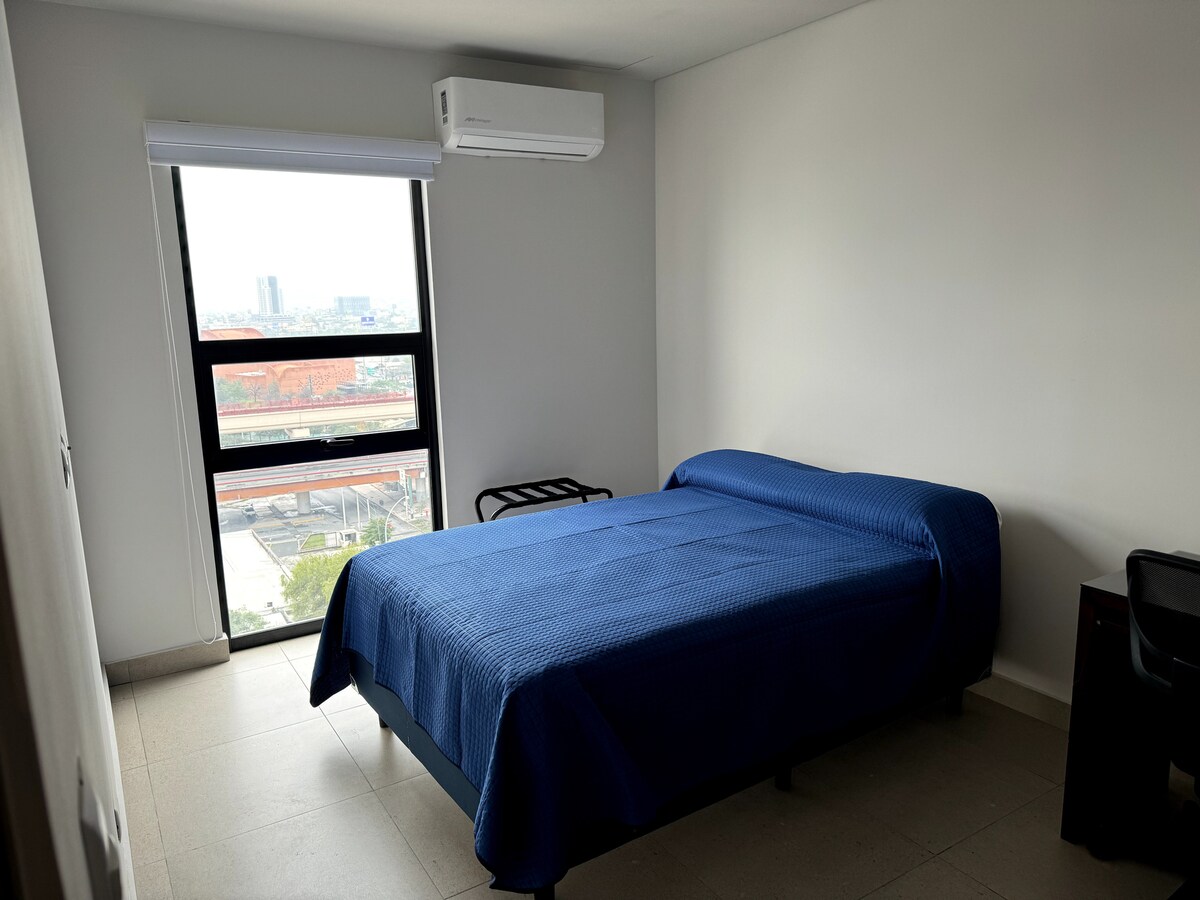Hermoso depto amplio con todas las amenidades. Climatizado, cocina, lavasecadora, escritorio para trabajar. Varios balcones. Un baño está fuera de la recámara y el otro dentro de la habitación. Se aprecia la vista a la ciudad. Restaurantes y centro comercial muy cerca del depto. Cuenta con terraza privada (preguntar disponibilidad) en el último piso con vista a la ciudad por si desean disfrutar de la vista o hacer carne asada. Ideal para cena romántica. Cuenta con tinaco