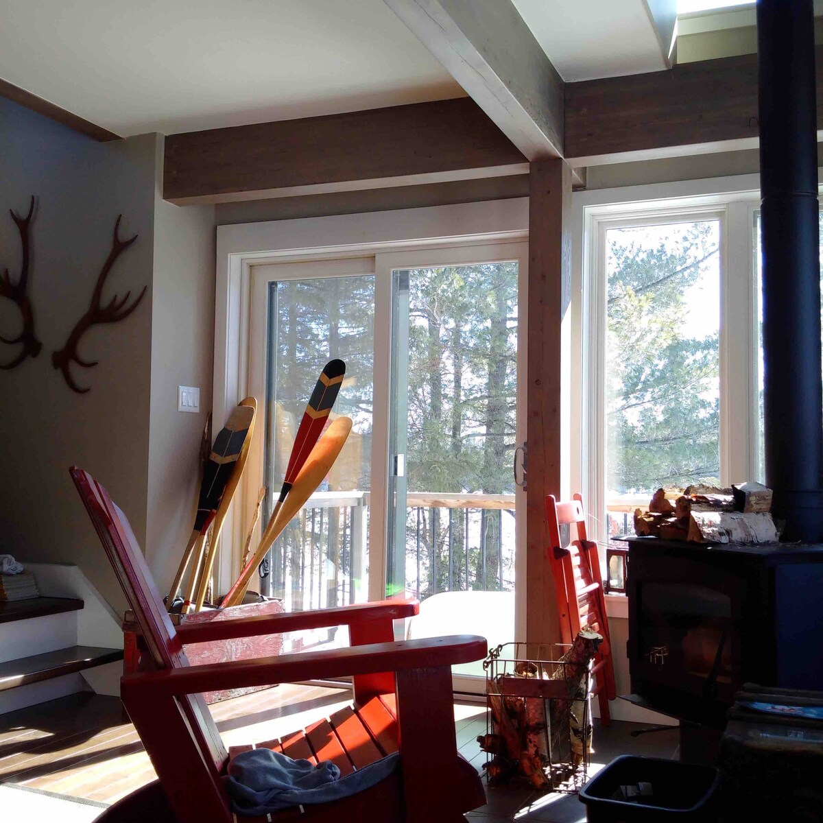 A western red cedar wood and glass cabin on a wonderful spot: a rocky peninsula, pines, loon calls... Enjoy sunsets from deck or dock, dive into the lake, enjoy water reflections while reading inside or when outside. UNLIMITED HIGH SPEED INTERNET Wi-Fi. The Cabin, a 13 corners structure on two levels is facing the lake on three sides. The only cabin by the water on the lake to explore by canoe. Great fishing (Lake Trout and Pikes), road access, free parking.
