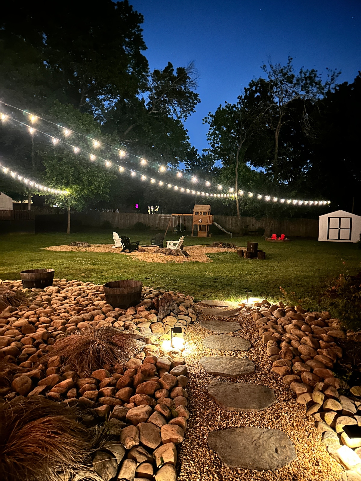 Welcome! Enjoy this lovely home featuring it's newly reimagined backyard oasis - your haven for relaxation and connection. Gather around the glowing fire pit, unwind at the covered outdoor bar, or lounge under dreamy lights in the turfed, fully fenced yard. Swing in the two-person hammock beneath the stars and savor peaceful mornings or cozy nights. Free Smores! Experience comfort, space, beautiful decor, and a gorgeous and relaxing deck in this open concept home. You will not want to leave!