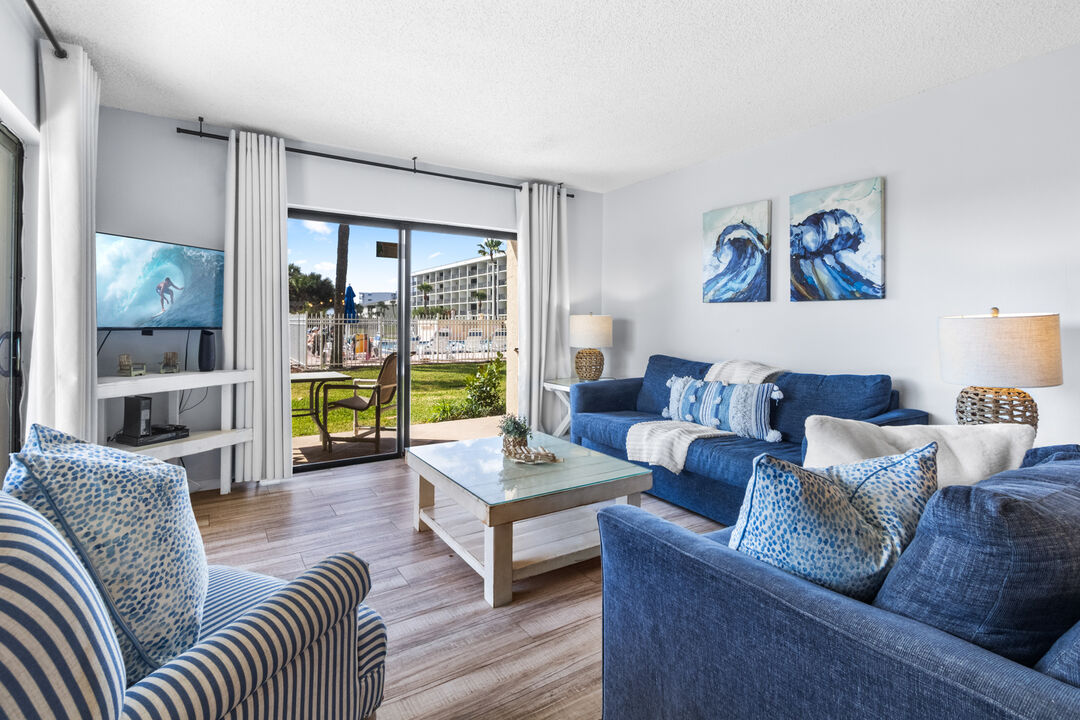 ¡A pocos pasos de la arena! Lujosa y espaciosa suite de 1 dormitorio y 1 baño. Impresionantes vistas al mar desde todos los ángulos, incluyendo la corredera de triple vidrio, el balcón y las ventanas de gran tamaño del dormitorio. Ve y siente los lanzamientos de cohetes desde el balcón privado. Perfecto para aventureros acuáticos o amigos íntimos. Decorado con buen gusto y recién reformado, espera una ubicación idílica para divertirte en el agua con lujo para un máximo de 4 huéspedes. Cerca de Disney/Aeropuerto de Orlando, Centro Espacial Kennedy, Puerto Cañaveral, Cocoa, Melbourne.