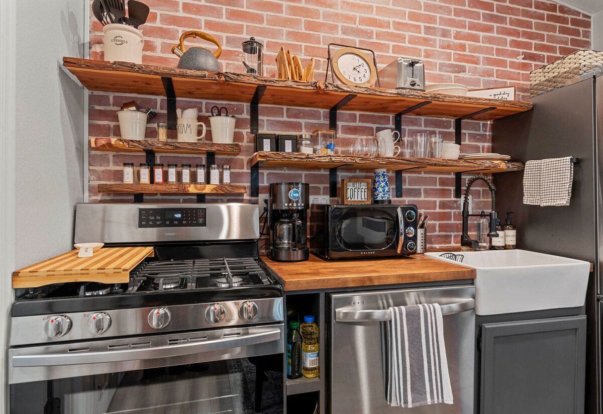Te sentirás como en casa en esta casita única, con su deliciosa paleta de colores y su fabuloso diseño arquitectónico. La madera natural, la piedra y los materiales metálicos se entrelazan ingeniosamente para crear calidez y comodidad, mientras que las grandes ventanas y el techo alto crean amplitud. Prepara café o comidas en la cocina bien surtida y relájate en el patio al aire libre rodeado de árboles maduros. ¡A poca distancia a pie o en coche de Whole Foods, restaurantes y senderos!