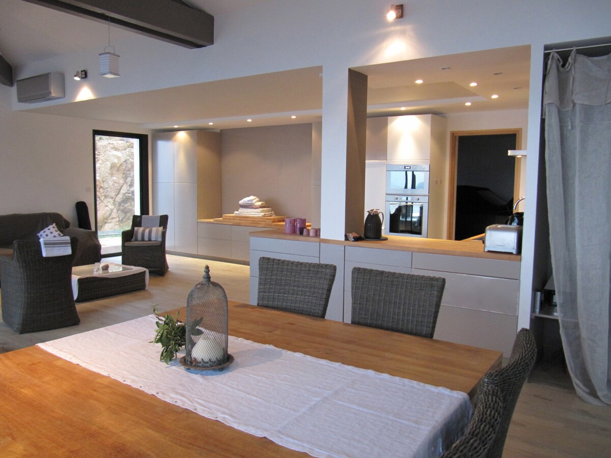 Tranquilidad y Armonía entre Mar y Maquis Usted será conquistado por la serenidad del lugar, y el encanto de la propiedad. Las terrazas de madera frente al mar le permitirán disfrutar plenamente del sol alrededor de la piscina climatizada y detenerse en una zona de comedor abierta a la naturaleza y al mar. La parte trasera de la casa se abre a un sotobosque, para un momento de frescor o descanso con total tranquilidad o para descubrir las especies endémicas del matorral paseando por la propiedad.