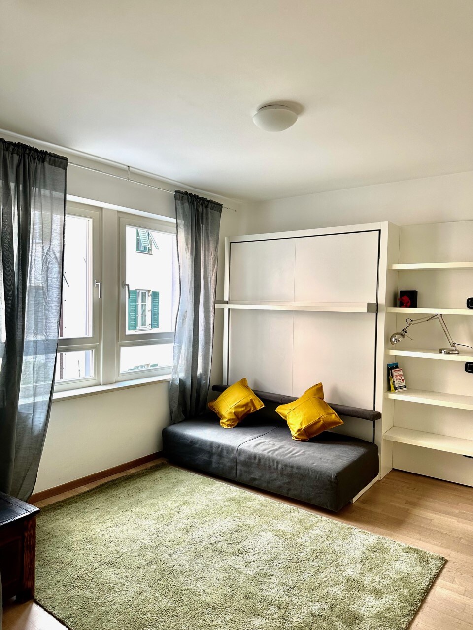 Un ambiente elegante y espacioso en el característico casco antiguo de Bolzano, cuidadosamente decorado para detalles, diseño y funcionalidad en un edificio de reciente construcción. Estudio luminoso y cómodo equipado con cocina y cama doble (que se desvanece) tamaño queen con terraza, ideal para una estancia relajante, deportiva y cultural en la capital del Tirol del Sur. La propiedad tiene un garaje privado (de pago) con apertura eléctrica en el sótano.