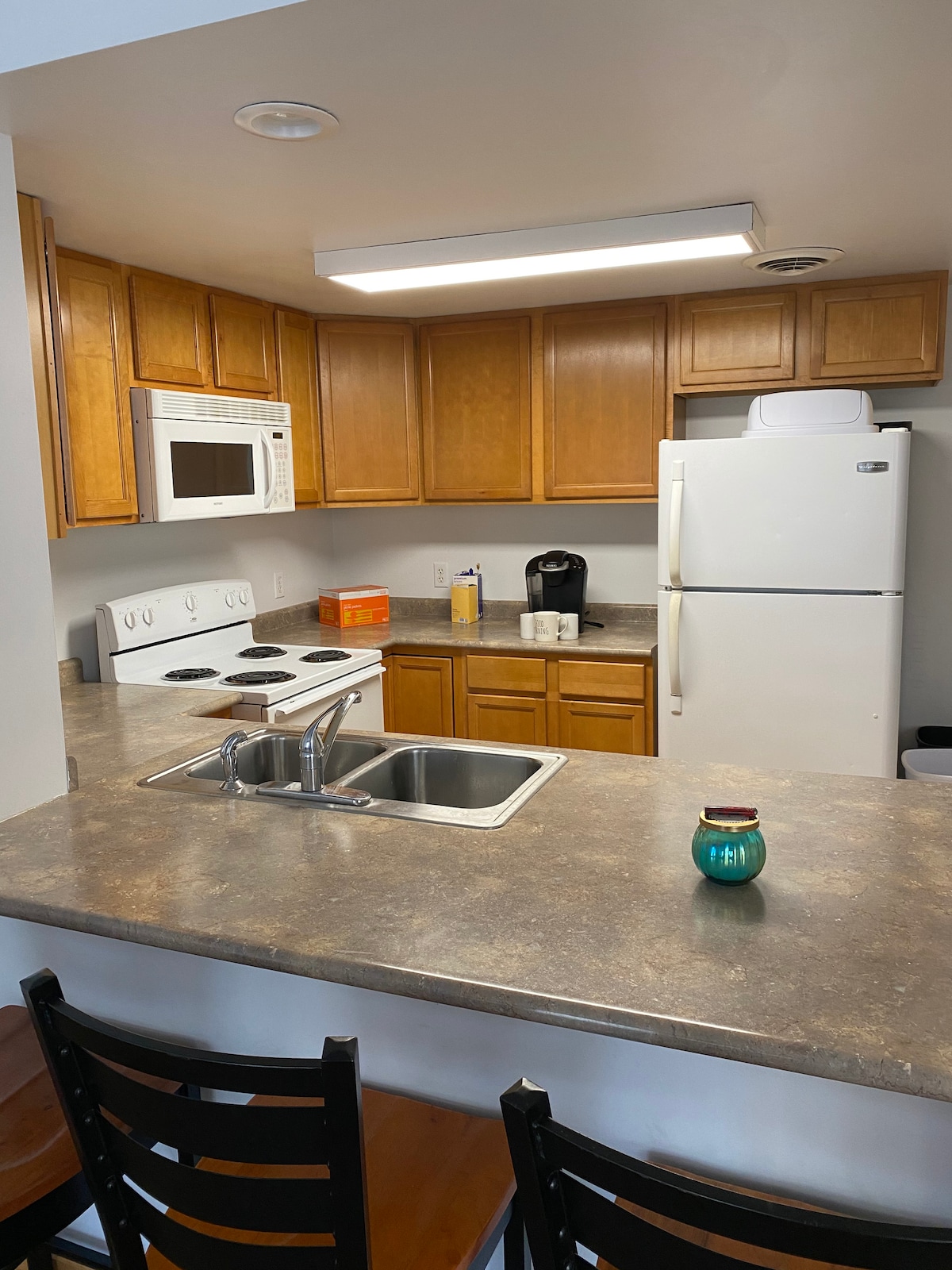 Situado en un barrio tranquilo a las afueras de una pequeña ciudad de Pensilvania, ofrecemos un apartamento completo en el sótano privado. Tendrás acceso a dos plazas de aparcamiento fuera de la calle, una terraza semiprivada en el exterior de nuestros hermosos jardines y una entrada privada al apartamento. En el interior tienes un dormitorio, baño completo y cocina de concepto abierto, comedor y sala de estar, todo para ti. Hay una cama tamaño queen en el dormitorio y un colchón tamaño queen disponible para colocar en el salón.