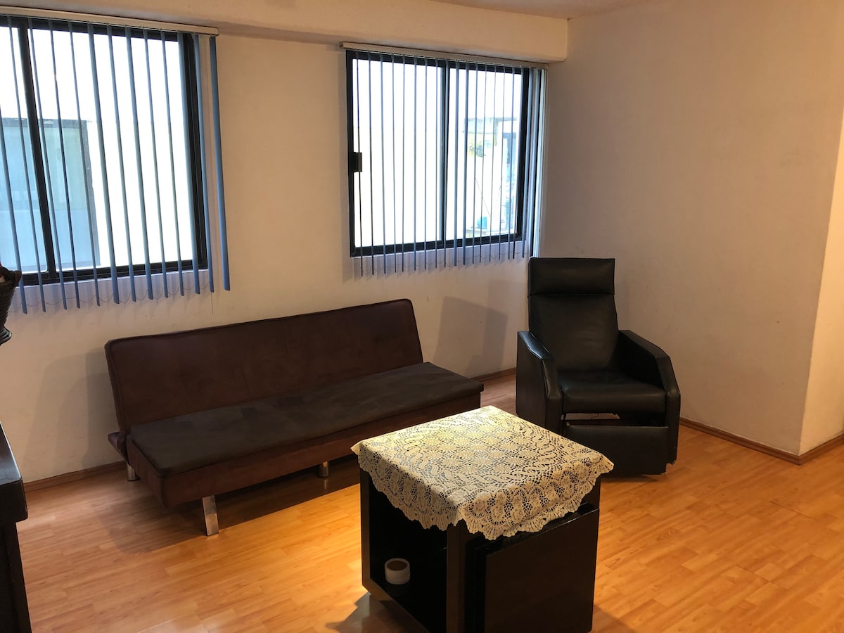 Desde 2018, Un Lugar Tuyo en Cdmx significa calidez, confianza y exclusividad total con su familia o amigos. Disfrute de comodidad, limpieza, cero ruido urbano, independencia, tranquilidad, seguridad y descanso. Hogar rústico, con cocina comedor pequeña, baño y recámara con 2 Camas + 1 individual. Ubicado en el primer piso. Con acceso a Metrobus, Metro Bellas Artes, a 12 minutos del Zócalo. Su estancia larga será mas confortable por descuentos de 1, 2, 3 semanas y mensual. Bienvenido el mundo!