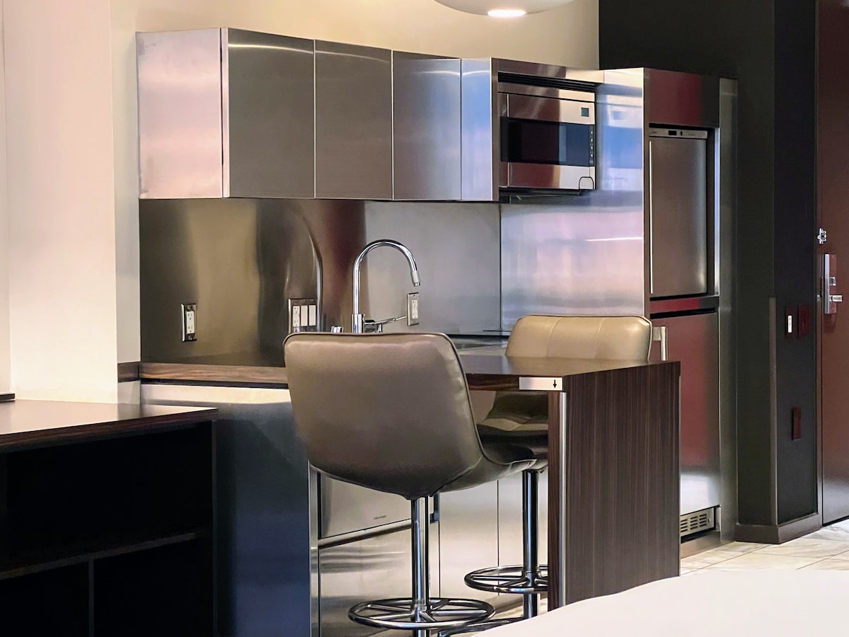 Sin cargo por cancelación hasta 5 días antes del check-in. Sin tarifa de limpieza. Sin tarifa del complejo turístico. Palms Place se siente más como un hogar que como un hotel. Alejado de la acción incesante de los casinos. El estudio de lujo de cuatro diamantes en Palms Place es un caso de estudio de lo que es el lujo contemporáneo. 615 pies cuadrados de espacio habitable con sala de estar, mesa de comedor a la altura de la encimera, cocina pequeña. Todos los huéspedes disponen de un balcón de tamaño completo con vistas al Strip, a la ciudad y a las montañas. Las palmas sostienen la tarjeta de 100 $/noche, que se retira al finalizar la compra