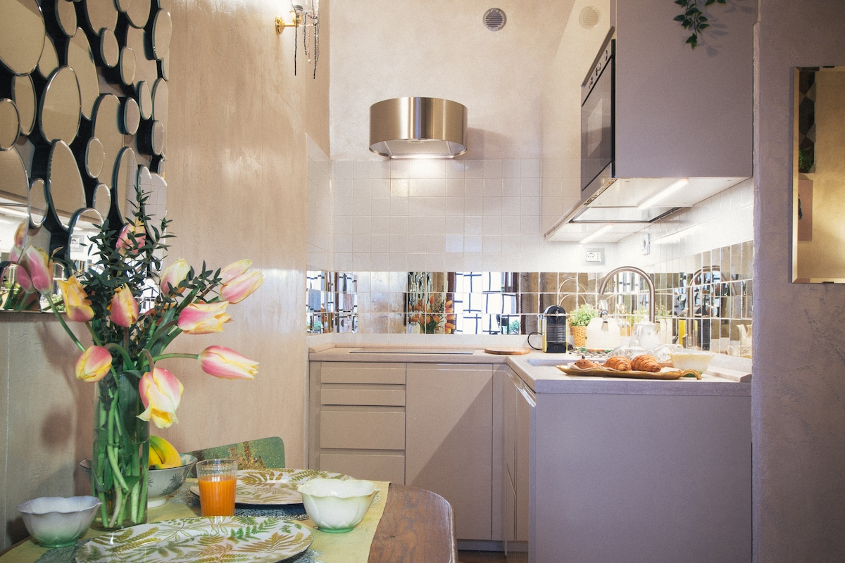 Toma un baño de luz romana en este luminoso apartamento, alegre y colorido, con muebles de diseño y una pequeña terraza que recorre toda la casa para uso exclusivo. La luz es, sin duda, el elemento que distingue a esta casa, que se encuentra en el quinto piso de un edificio antiguo y cuenta con una pequeña terraza a lo largo de toda la casa donde se puede desayunar con tranquilidad para disfrutar de una buena copa de vino italiano después de un buen día recorriendo las antiguas calles de la «ciudad eterna».