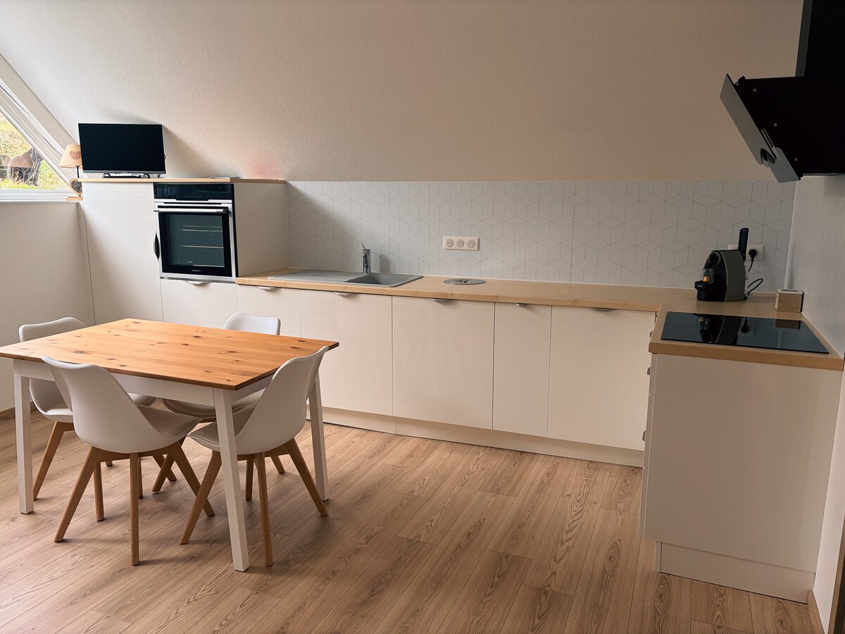 Encantador chalet de 75 m2 en el corazón de los Vosgos con vistas a las alturas de la ciudad Todas las comodidades están a 2 km Muchas actividades al aire libre están cerca: Alquiler de bicicletas, segway Esquí:Lago blanco 25 minutos,La Bresse 1h Parque minero Tellure Situado a una hora de Estrasburgo, a 40 minutos de Colmar y a 20 minutos de Ribeauvillé. En época navideña podrás descubrir los mercados También puede hacer un paso por la ruta del vino para visitar las bodegas y degustar los vinos