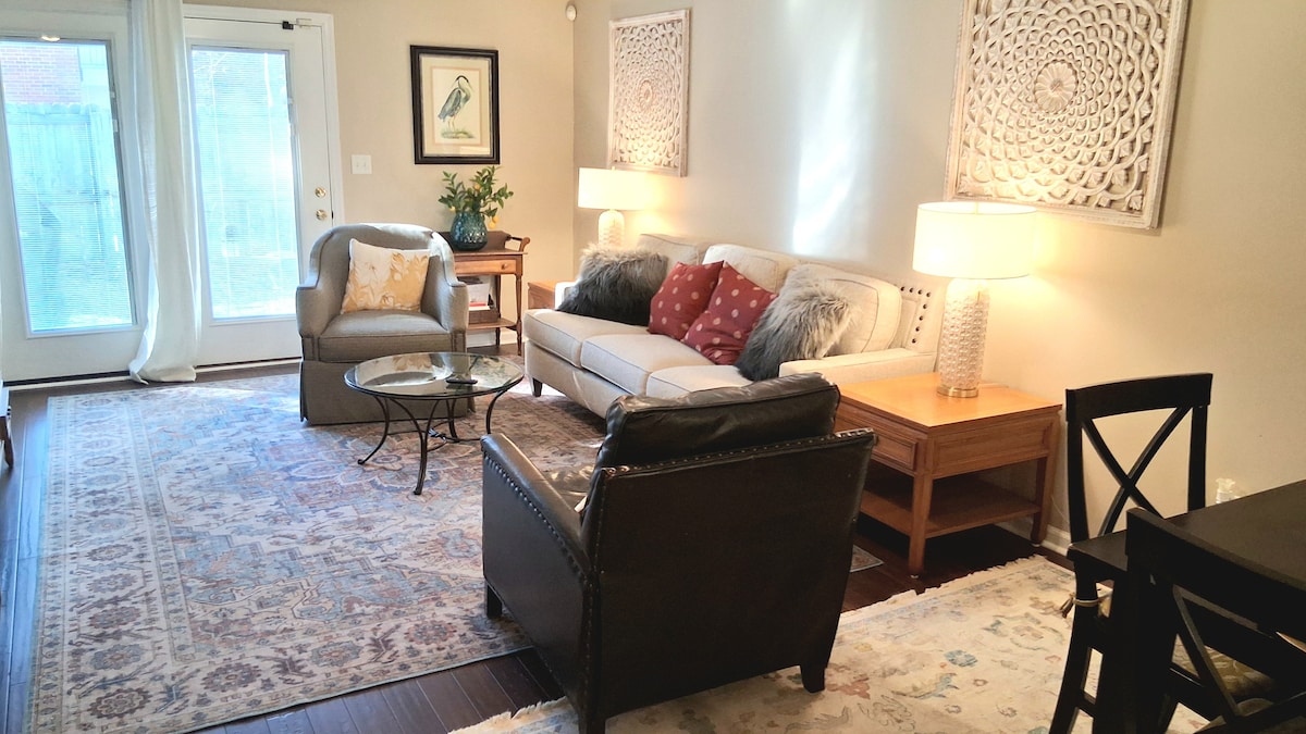 Sumérjase en el encanto moderno/vintage en esta casa de campo de 2 dormitorios/1 baño RECIENTEMENTE remodelada en el corazón de Augusta, a solo 2.5 millas de The Augusta National. Junto a la I-20, Washington Rd. y a solo 5 millas del Hospital Médico, este elegante oasis está ubicado en el centro. GRANDES restaurantes y bares están en todas las direcciones. Los nuevos colchones, sábanas, almohadas, toallas, electrodomésticos, televisor de pantalla plana, chimenea, hermosa iluminación, pisos de madera, encimeras de cuarzo y un hermoso patio trasero aseguran que se relaje con estilo.