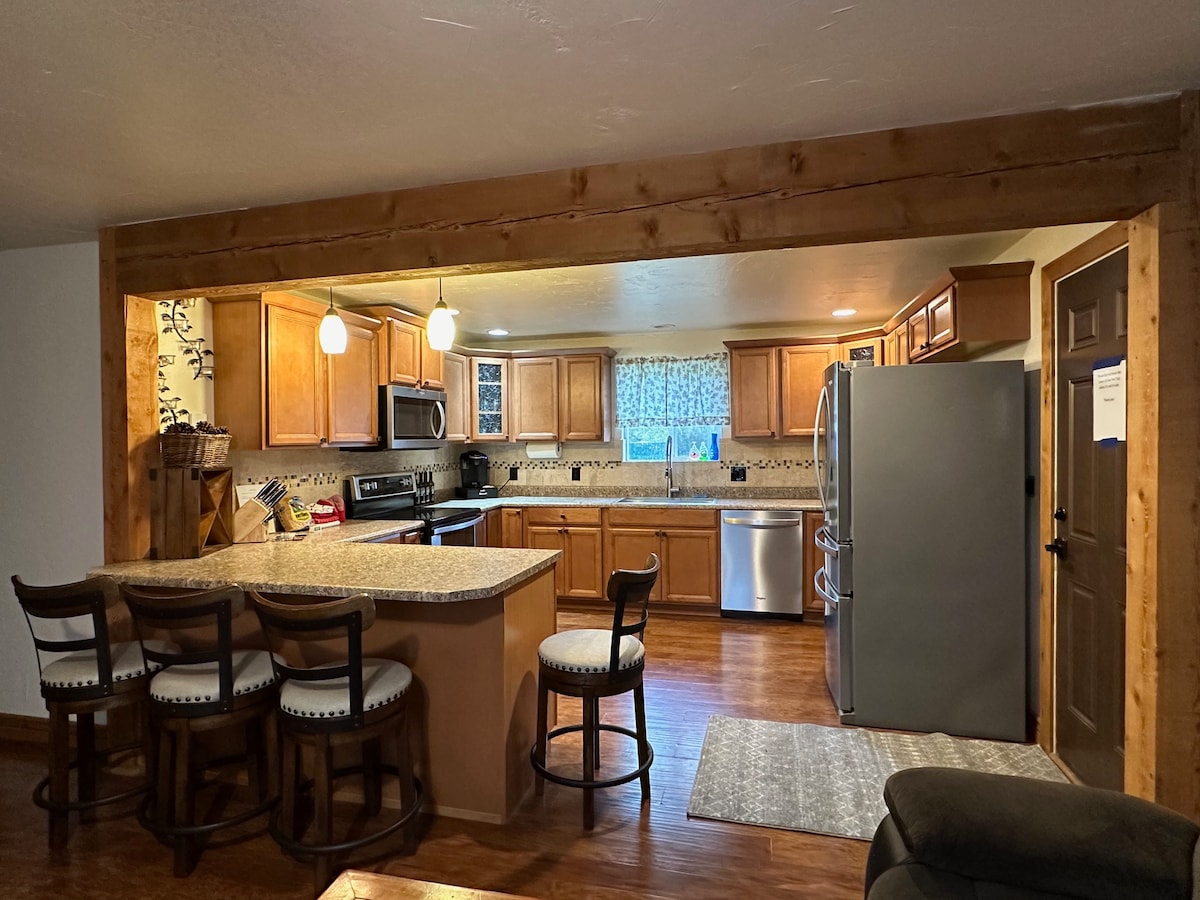 Cow Creek Cabin se encuentra en un prado tranquilo con unas vistas preciosas de Big Mountain. Está a solo dos millas del centro de Whitefish y a 15 minutos de la estación de esquí. Este tranquilo entorno de Montana es una base ideal para aventuras en Whitefish. La cabaña cuenta con amplias ventanas que traen la vista de la montaña al interior. Una estufa de leña te espera a tu regreso de un día en las pistas o senderos. La cocina está equipada con todo lo necesario para cocinar tus propias comidas. El televisor OLED está conectado a internet rápido Starlink.