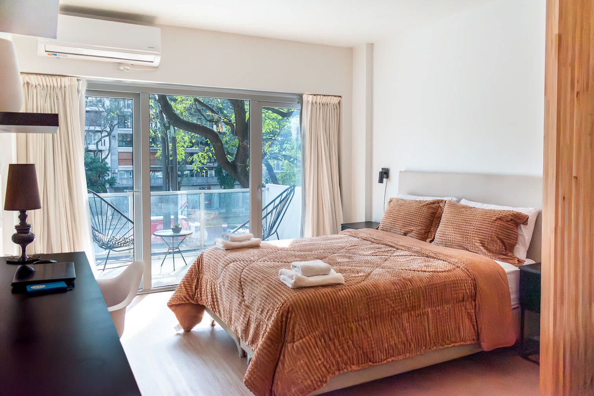 Estudio con vista verde en Palermo con lavandería