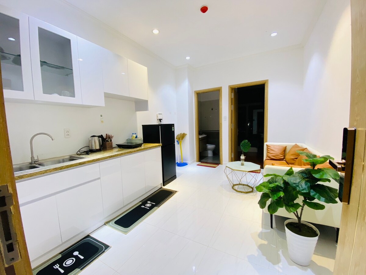 Apartamento de clase alta con hermosas vistas en el centro de la ciudad de Long Xuyen. - Cerca de mercados y supermercados locales: Coop, Vincom, Mega, Walking Street, mercado nocturno, iglesia, universidad. - 32 m2 con dormitorio, aseo, salón totalmente equipado con muebles modernos: TV de pantalla plana, nevera, sofá, cocina electromagnética, lavadora, aire acondicionado, calentador de agua... Solo trae tu maleta.