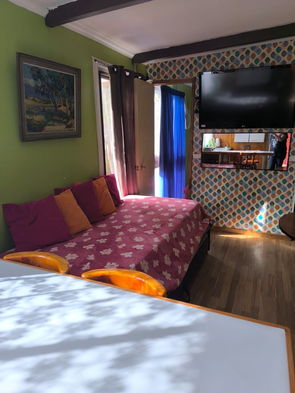 especial para parejas alejadas de ruido , cerca de todo cuando te quedes en este alojamiento céntrico ya que esta a 5 minutos de la playa, pub, restaurantes y 10 minutos del comercio de Tome, a 100 metros de la carretera donde pasa locomocion hasta las 22:00 esta en un lugar semi rural muy tranquilo y privado con servicios de tinaja por 30 mil adicionales por 12 horas