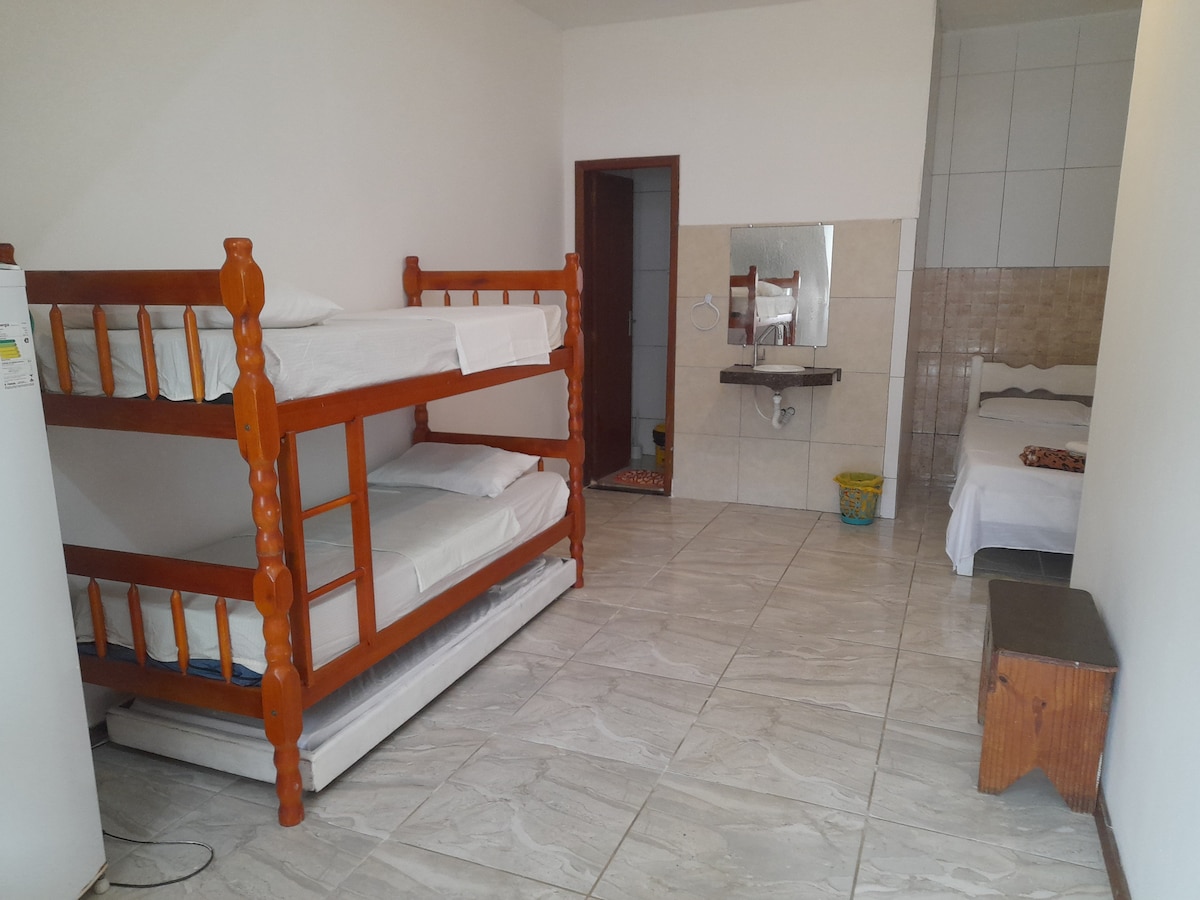 Relájese en este espacio tranquilo y elegante y abrace la sencillez en este lugar tranquilo y bien ubicado a solo 10 minutos a pie de la calle principal de Pituba. Bienvenido a nuestro refugio tropical en Itacaré en la playa de Tiririca, donde podrá desconectarse del mundo y conectarse con la naturaleza. Este alojamiento con vistas al mar cuenta con ventilador de columna, cocina, estufa, nevera y un buen balcón para leer un buen libro y descansar. Nuestro chalet se encuentra dentro de un condominio.