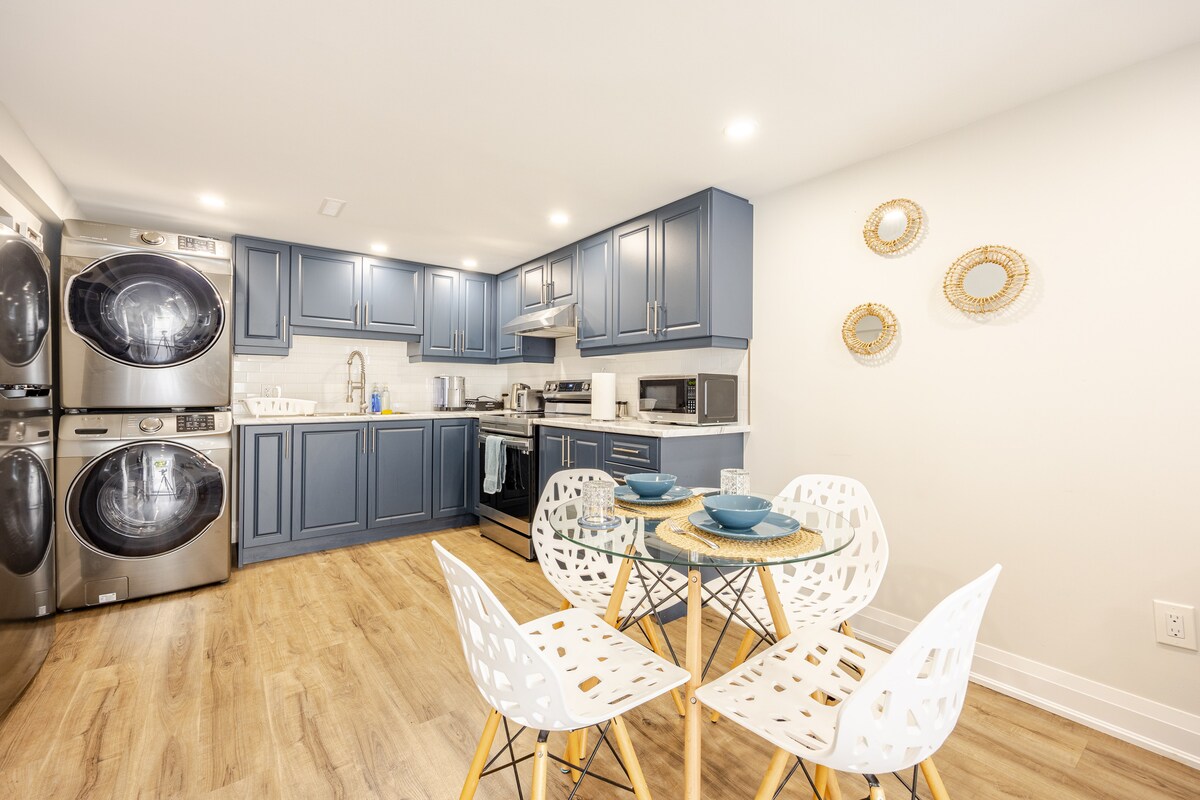 ¡Bienvenido a nuestra NUEVA y moderna suite de dos dormitorios en el sótano! La unidad puede alojar hasta 4 huéspedes (Idealmente, 2 adultos y 2 niños menores de 12 años) Este espacio luminoso y abierto ofrece comodidad y conveniencia con una entrada privada y un lugar de estacionamiento incluido con una cocina, electrodomésticos y muebles nuevos. Este apartamento iluminado por el sol tiene abundancia de iluminación natural que fluye a través de las muchas ventanas grandes. Un lavadero completo con lavadora y secadora, un espacio de estacionamiento designado para un automóvil y conexión Wi-Fi gratuita.