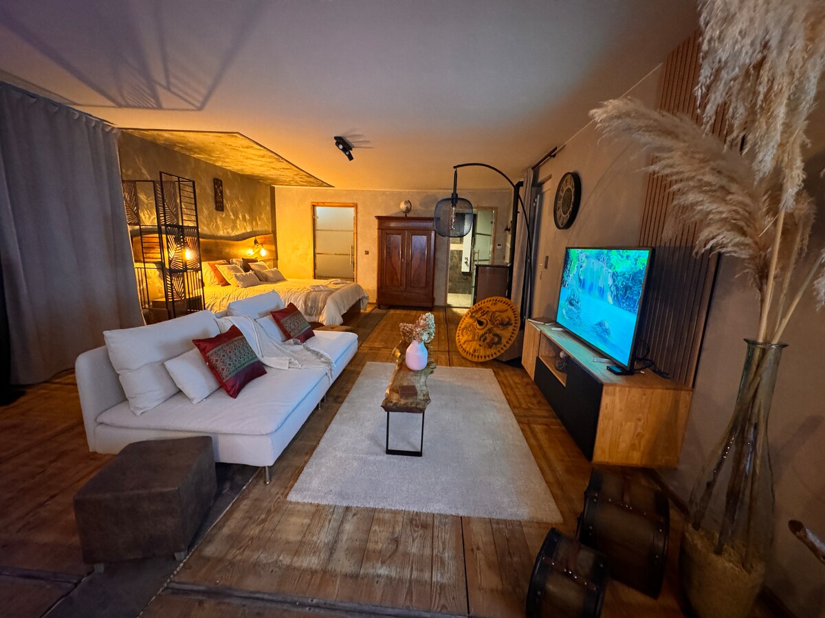 Le ofrecemos, idealmente situado en la frontera de Bélgica, este alojamiento moderno con piscina jacuzzi sauna y hammam. Durante su estancia, disfrutará de un lugar totalmente pensado para su comodidad con una piscina privada climatizada con vistas a su cielo estrellado, un jacuzzi, una zona de estar y bar, una suite con cama doble y baño, así como un exterior con terraza y jardín.