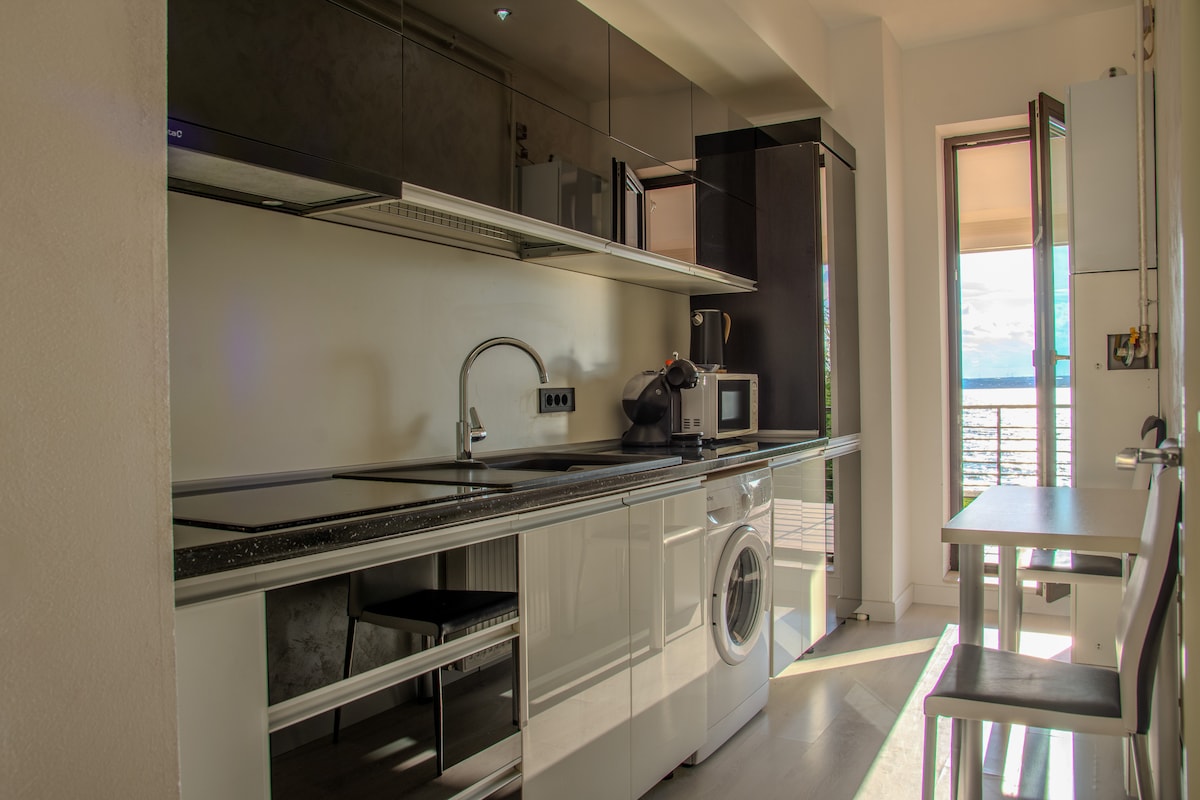 Diviértete con toda la familia en este alojamiento con estilo. Relájese en el balcón con vistas al mar. El apartamento está situado en un complejo en la primera fila de edificios junto al mar, a 5 metros de la playa. Tenemos nuestro propio estacionamiento, con barrera automática.