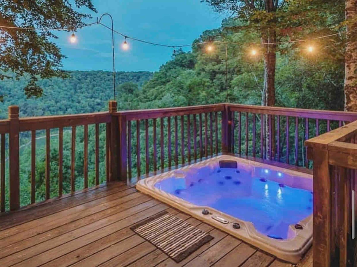 Puedes sumergirte en la tranquilidad en esta moderna cabaña con jacuzzi, chimenea interior y espacio al aire libre. El río Caney Fork limita con la granja de 63 acres, que conecta directamente con más de 60 000 acres de naturaleza protegida, donde tienes acceso gratuito a kilómetros de rutas de senderismo, cascadas mágicas, granjas históricas e impresionantes cuevas. En la cabaña, puedes escuchar los sonidos de la naturaleza mientras disfrutas de las vistas panorámicas del valle de Big Bottom y las vistas a las montañas del Parque Estatal del Golfo de Scott.