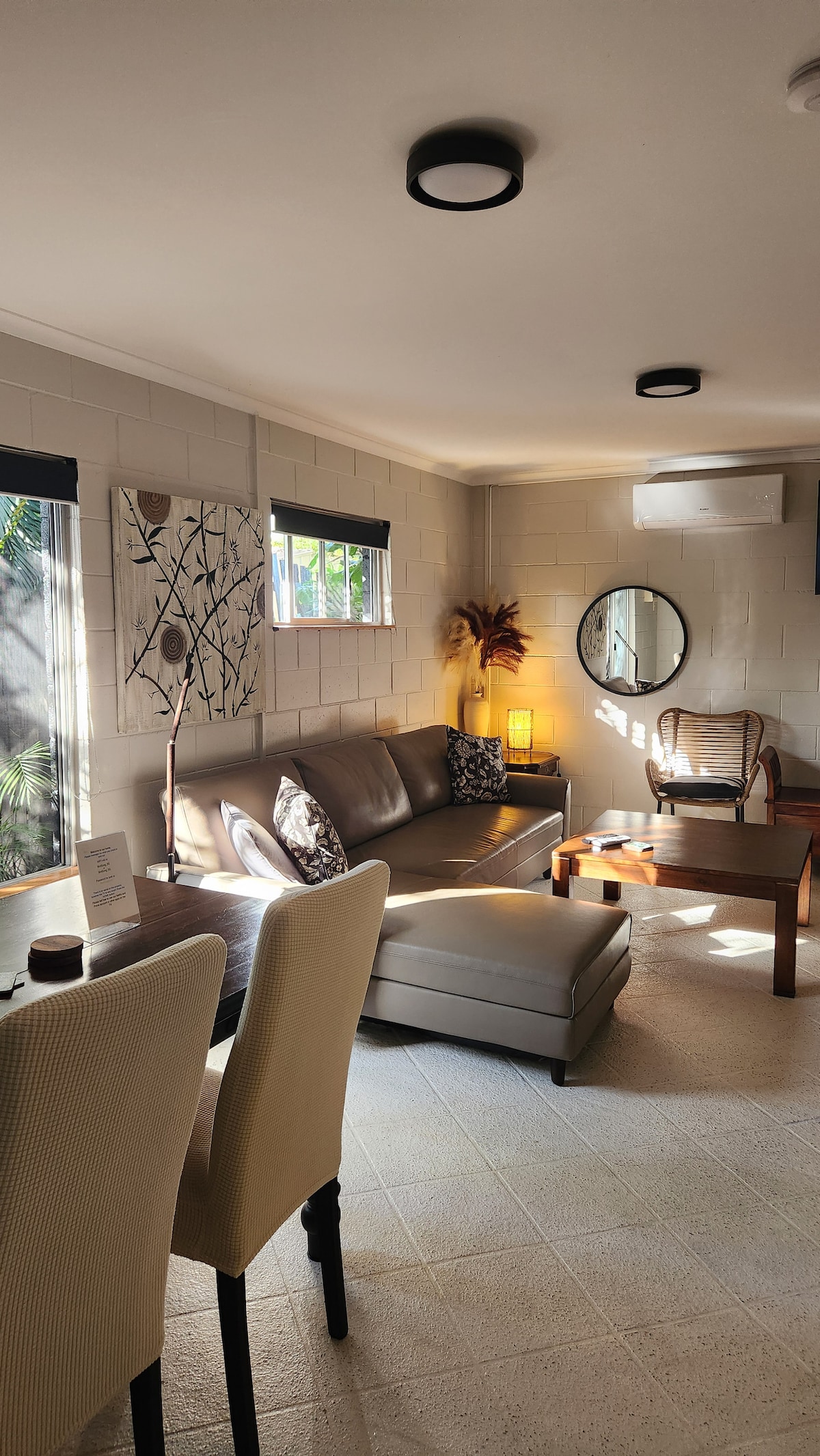 Siéntete como en casa aquí en Home Base Coolum. Elegante y relajado; con capacidad para hasta 6 huéspedes. Adecuado para familias, grupos de amigos o parejas. Es un paseo fácil y plano, o a 3 minutos en auto, de la playa de arena blanca de Coolum y las hermosas tres bahías. Casa de un nivel y 3 dormitorios, jardín tropical privado, terraza cubierta para desayunos al amanecer o cocteles a la sombra de la tarde. Luz y un poco peculiar con toques decorativos para que sea interesante.