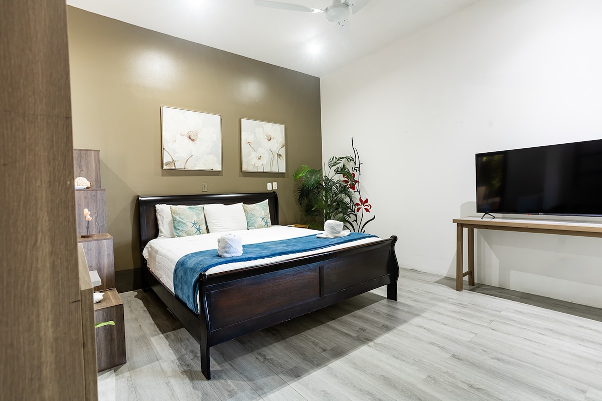 Estamos ubicados en el Corazón de Manuel Antonio, contamos con una ubicacion privilegiada con acceso a playa y rodeado de exuberante naturaleza. Las instalaciones ofrecen amplio parqueo. La habitacion se ubica en primera planta es de facil accesso y cuenta con un area social justo al frente, ideal para compartir en familia. Desayuno es incluido.